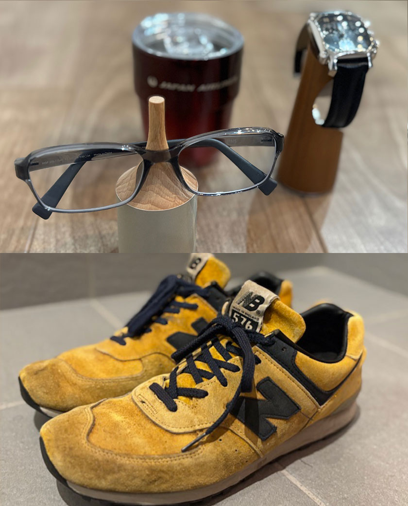 腕時計を置時計のように飾れるスタンドと、最近必須になった老眼鏡をかけておくスタンド