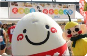 “やくもっちぃ”と一緒に「風の子もち」をPR。砂糖醤油の切り餅はホントに美味い!