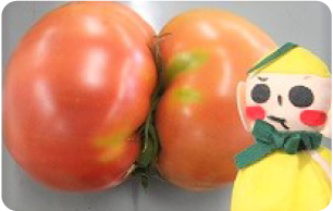 1つのヘタに2つの実がなってる!トマトの双子、初めて見たよ