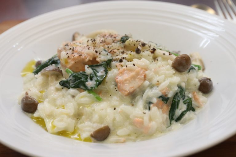 - お皿に盛り付け、お好みで粉チーズ、オリーブオイル、ブラックペッパーをかけたら完成。