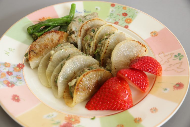 - しっかり混ざったら片栗粉をいれ、コショーで味を整える。(餡の完成)