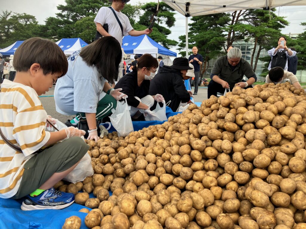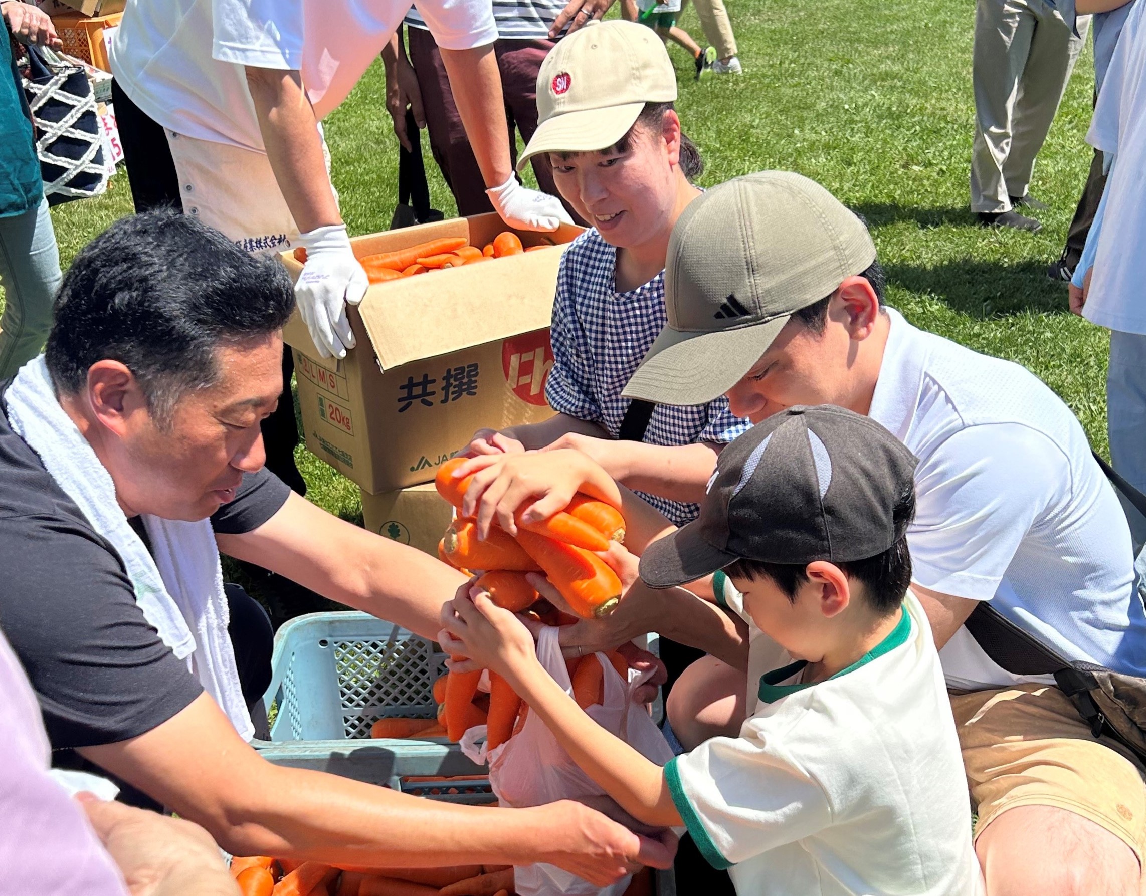 7月12日・13日、七飯営農センター営農課は、七飯町あかまつ公園にて七飯町地域担い手育成総合支援協議会として七飯町産ジャガイモ「メークイン」の揚げ芋や長ネギ、アスパラの販売、ニンジンの詰め放題を行い地元農畜産物のPRしました。