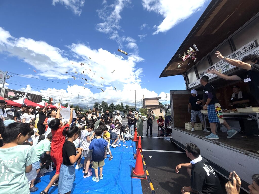 毎年、道南の青年部盟友が集い、管内の新鮮な農畜産物の販売や野菜詰め放題、米すくい、餅まきなどのイベントを行っています。農業○×クイズや野菜重量当てゲームなどのレクリエーションも大好評です。