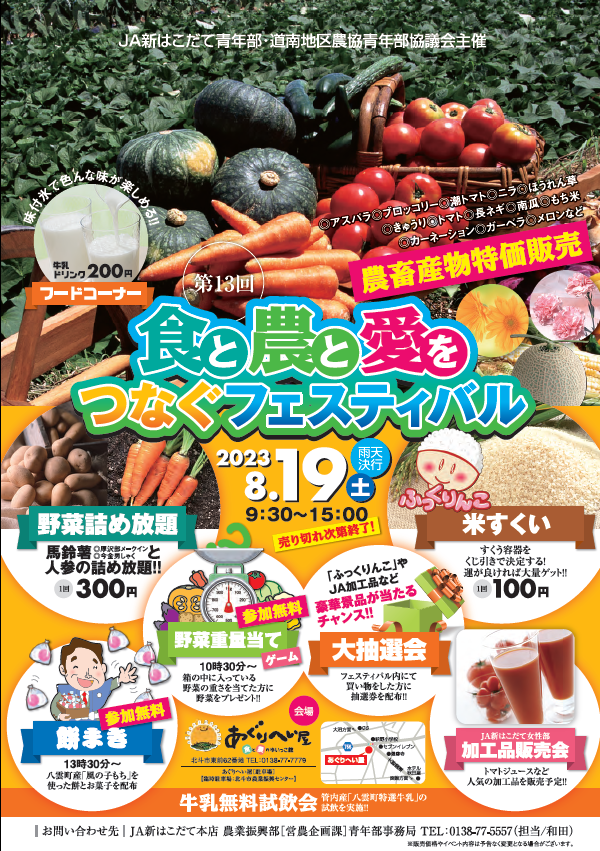 2023.08.17お知らせ食と農と愛をつなぐフェスティバルが開催されます!!